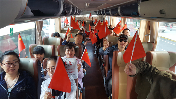 徒步走的沿线,处处洋溢着节日的气氛,五星红旗迎风招展,比赛期间,员工们纷纷和国旗合影留念,表达了对祖国的无限热爱之情。